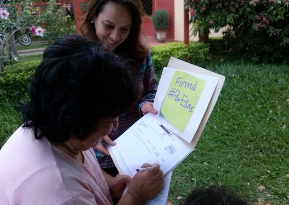 La campaña #PorEllas busca lograr una Ley de protección integral para las mujeres. El documento borrador se encuentra en constante revisión y ya fue presentado en foros departamentales en San Pedro, Alto Paraná, Itapúa y Caaguazú. En estos encuentros además se aprovechó para la recolección de firmas de apoyo para la campaña.